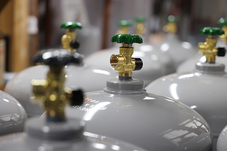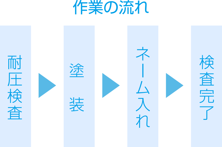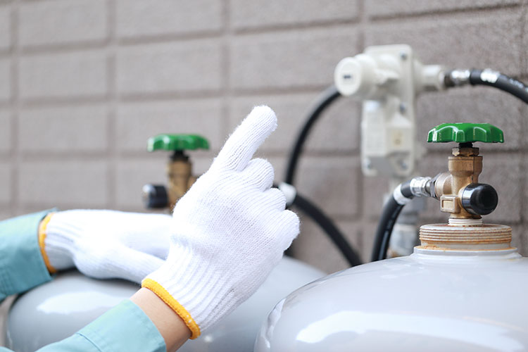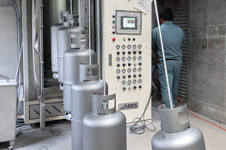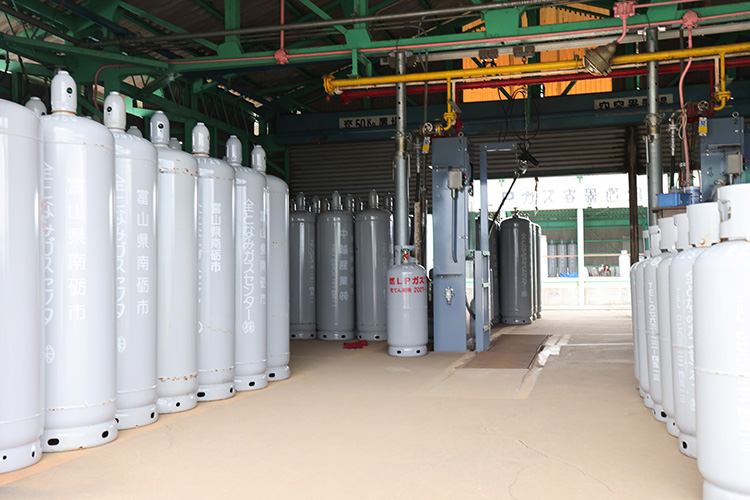 LPガスのボンベの法定点検を行っており、漏れやサビなどによる腐食を厳重にチェックしています。