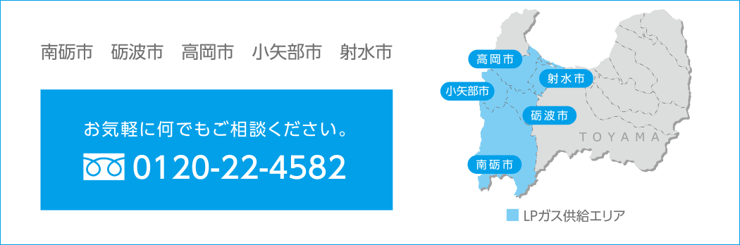 お客様宅での”ガスの事故は絶対に起こさない・起こさせない”を徹底するため、お客様宅の使用形態を把握し、「もう一つ上の安心を」を合い言葉に、お客様に選ばれるガス販売事業者を目指して参りました。 平成11年1月には、富山県第一号となる認定販売事業者の認定を受け、平成28年4月にはゴールド保安認定事業者となりました。お客様の保安の確保を第一に考え、365日24時間体制で緊急時出動に備えております。