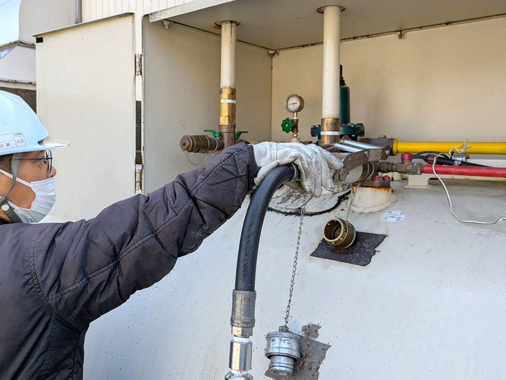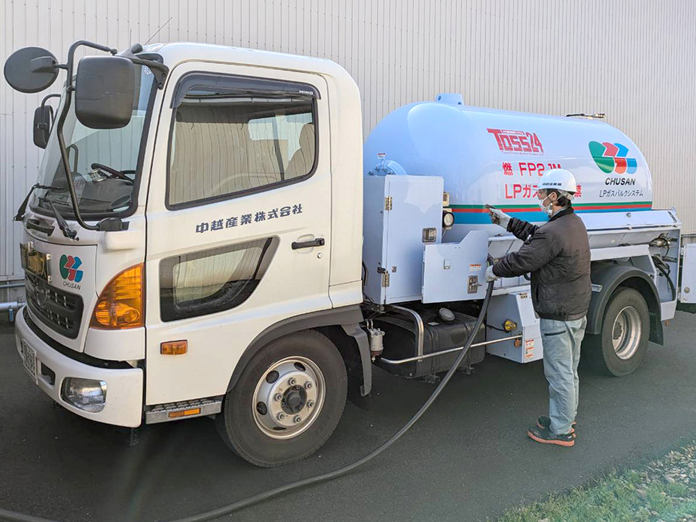 小型のバルクローリーを備え、LPGバルク貯槽・容器への直接充填方式も行っています。